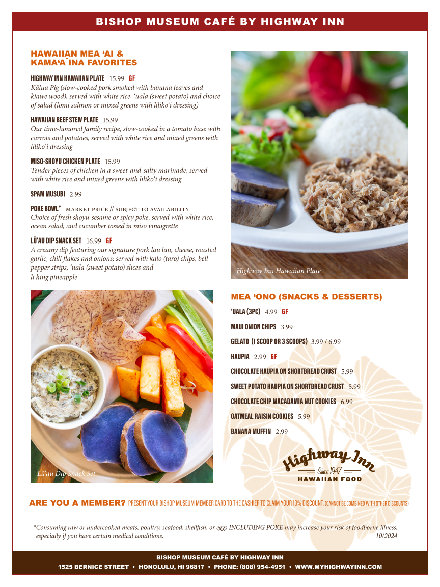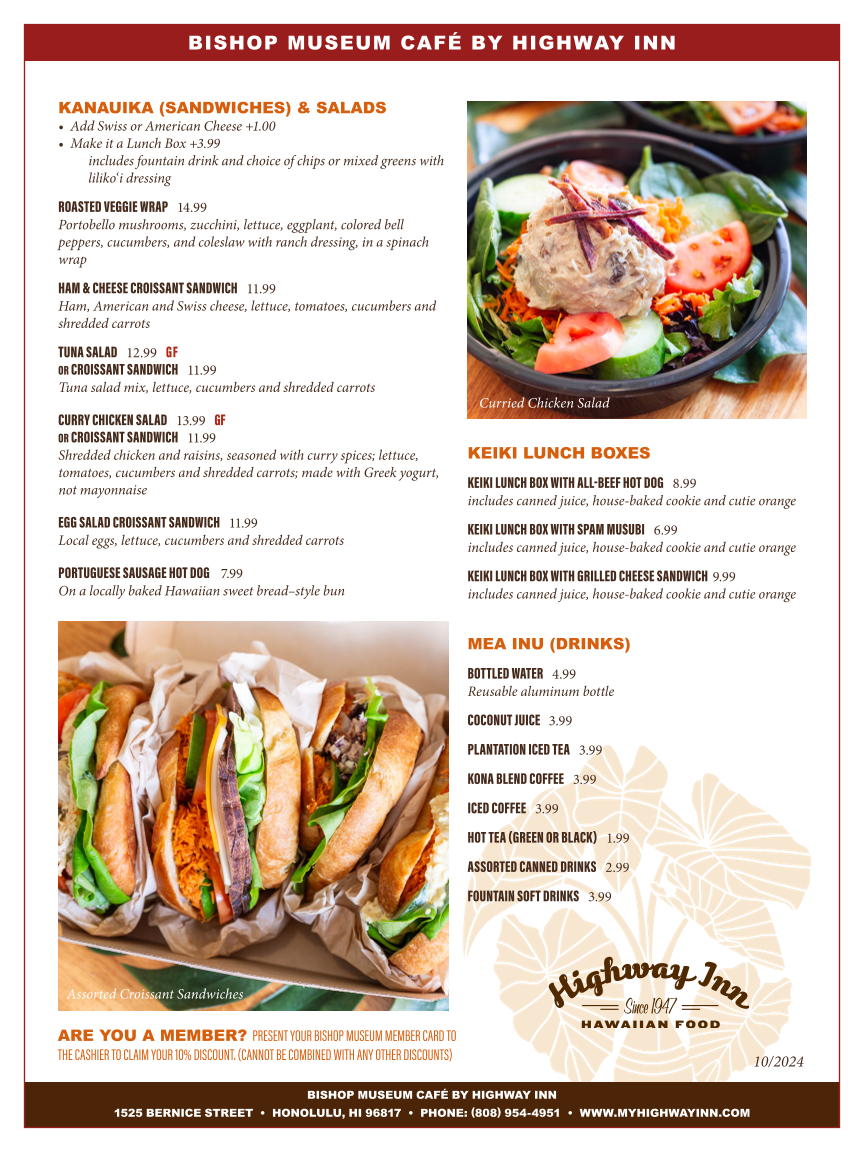 The Bishop Museum Cafe by Highway Inn offers a delightful culinary experience right within the cultural heart of Honolulu. Nestled in the Bishop Museum, the cafe is the perfect spot for a break during your exploration of Hawaiian history and culture. Guests rave about the traditional Hawaiian dishes, with popular selections including the renowned chicken curry salad and the comforting plate lunches.